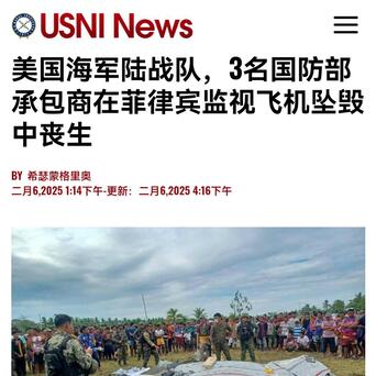 2月6日,一架美国军方承包的“比奇空中国王350”侦察机在菲律宾南部坠毁,飞机在马拉蒂蒙村的一片稻田摔得粉碎,机上1名海军陆战队员和3名合同承包商全部死亡,而且还砸死了村民的一头水牛(弥补了人类历史上水牛没有被飞机砸死过的空白)。